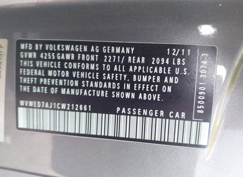 - VIN: WVWED7AJ1CW212661