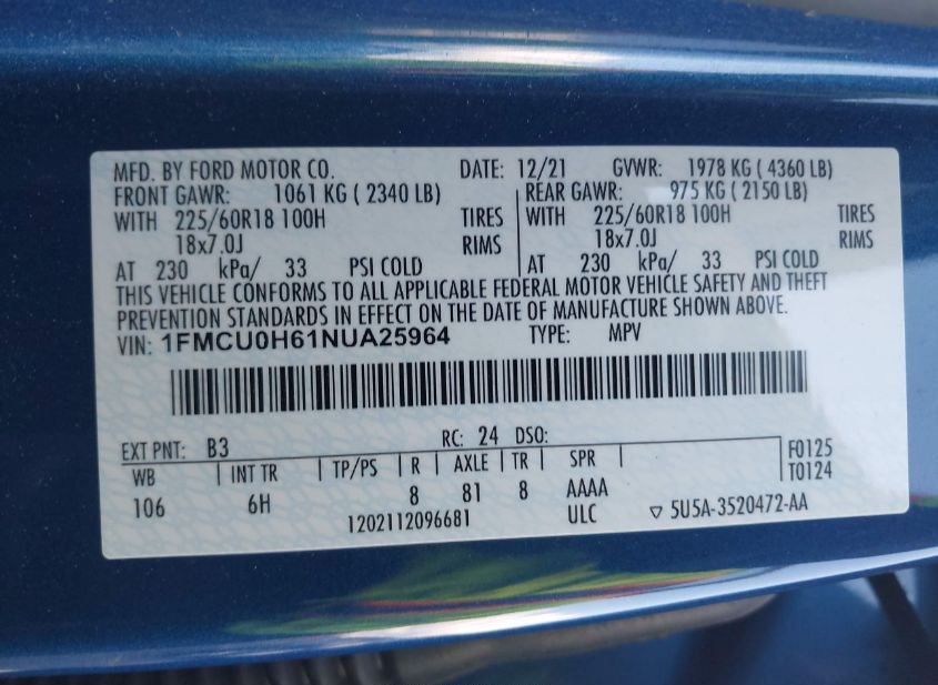 - VIN: 1FMCU0H61NUA25964