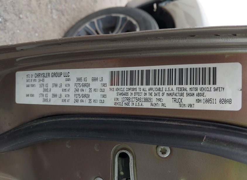 - VIN: 1D7RB1CT5AS138691