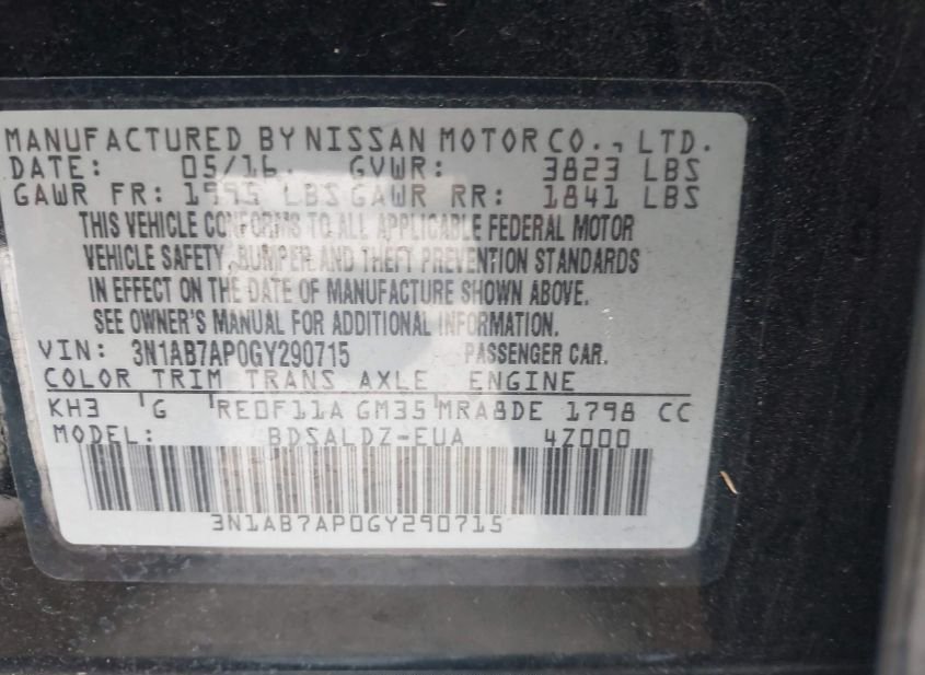 - VIN: 3N1AB7AP0GY290715