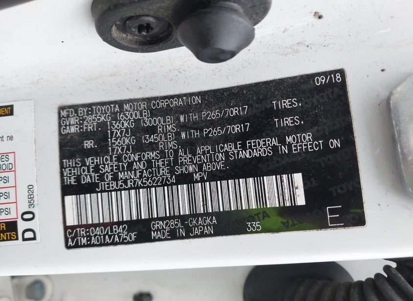 - VIN: JTEBU5JR7K5622734