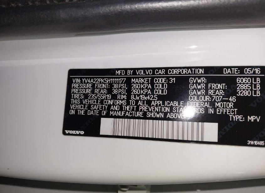 - VIN: YV4A22PK5H1111177