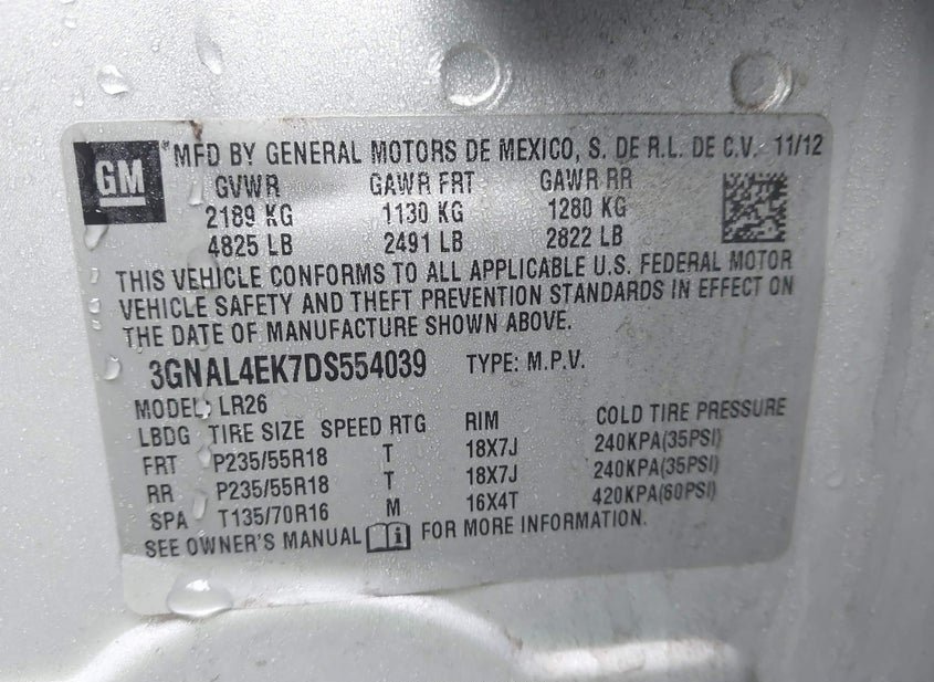 - VIN: 3GNAL4EK7DS554039