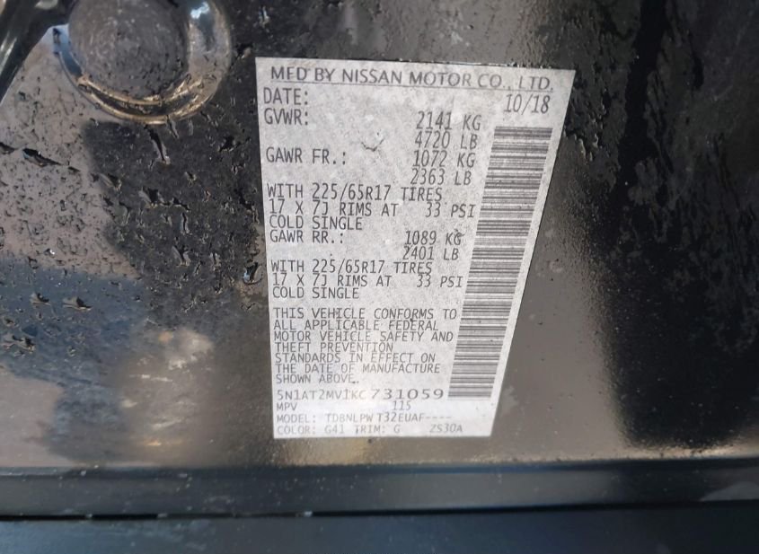 - Название лота: 2019 NISSAN ROGUE S