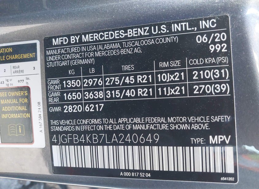 - VIN: 4JGFB4KB7LA240649