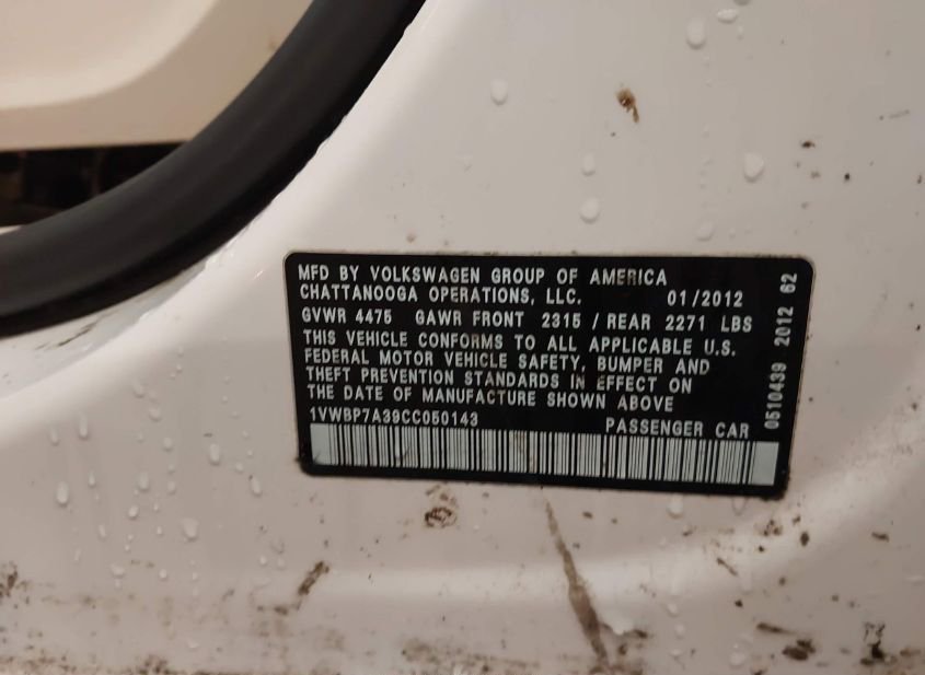 - VIN: 1VWBP7A39CC050143