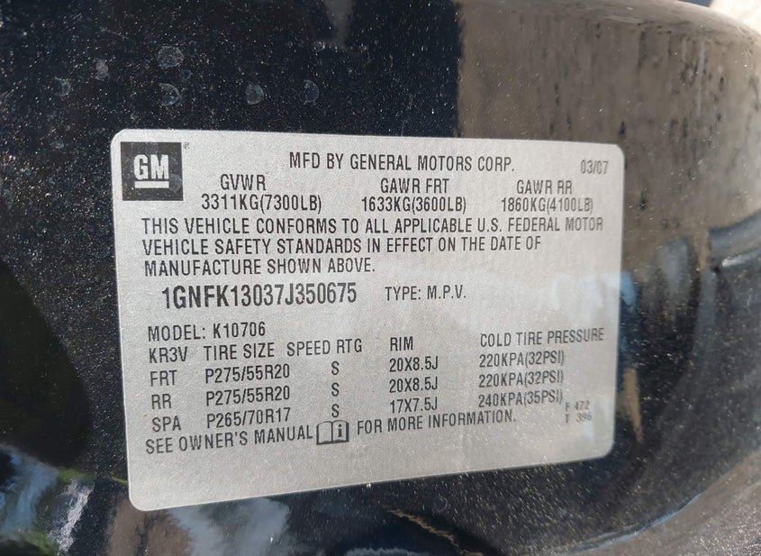 - VIN: 1GNFK13037J350675