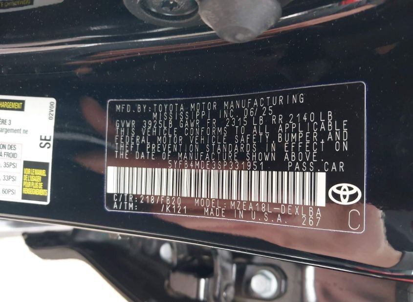 - Название лота: 2025 TOYOTA COROLLA LE