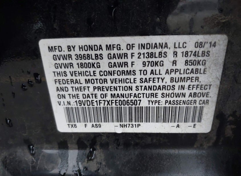 - VIN: 19VDE1F7XFE006507