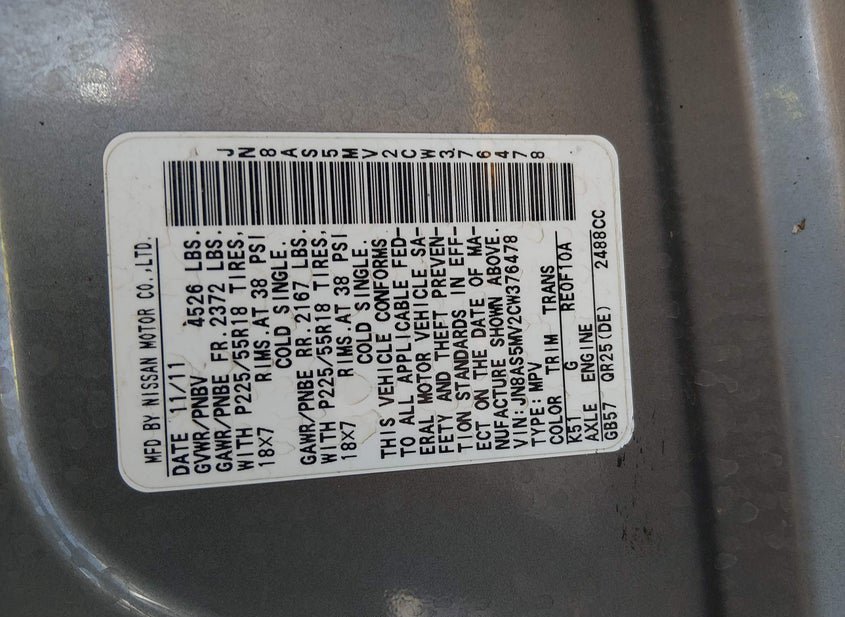 - VIN: JN8AS5MV2CW376478