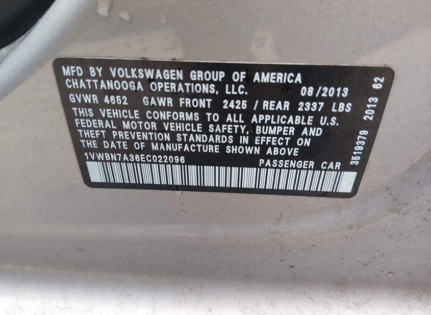 - VIN: 1VWBN7A36EC022096
