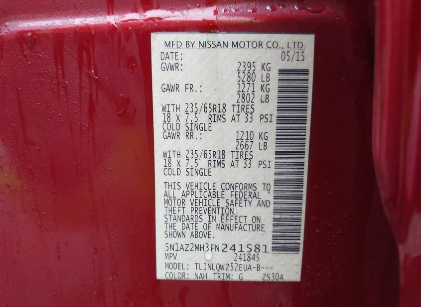 - VIN: 5N1AZ2MH3FN241581
