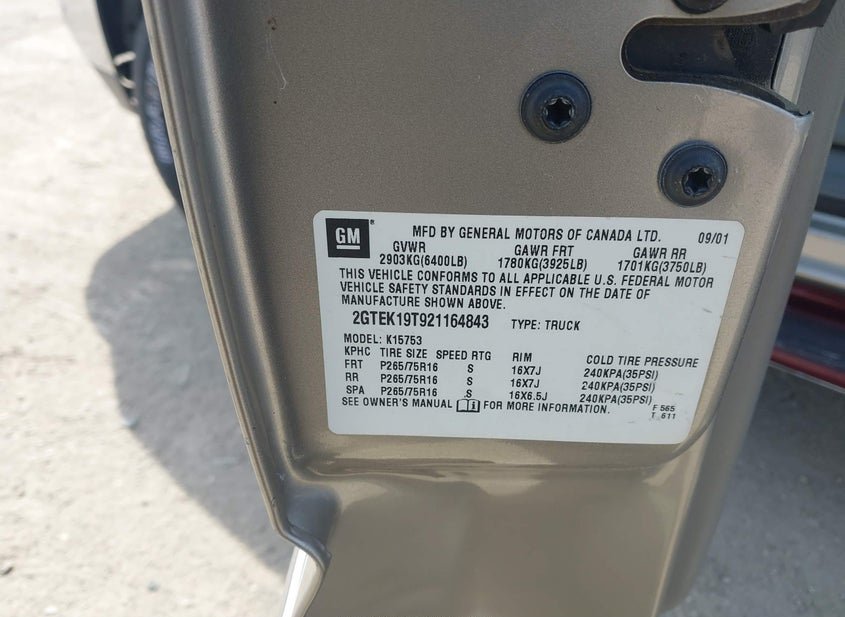 - VIN: 2GTEK19T921164843