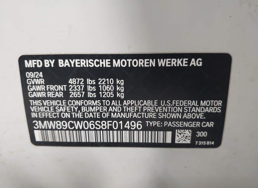 - VIN: 3MW89CW06S8F01496