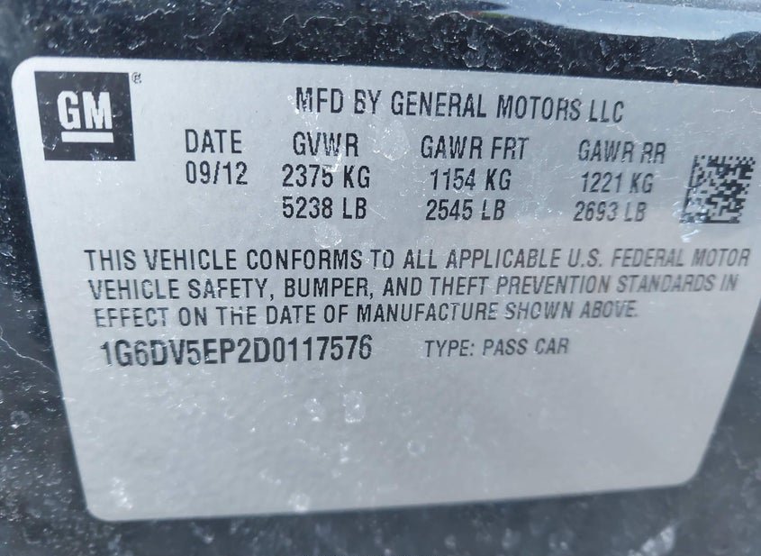 - VIN: 1G6DV5EP2D0117576