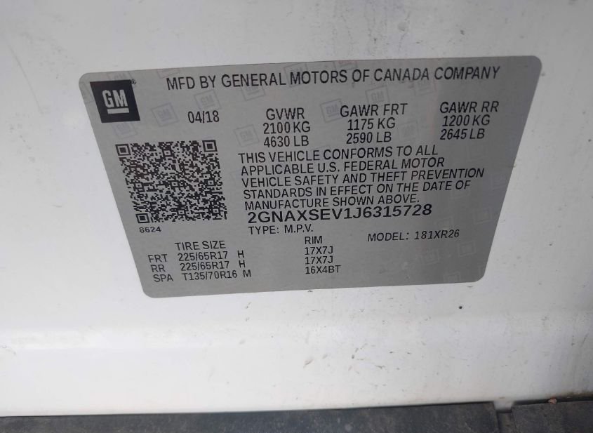 - Название лота: 2018 CHEVROLET EQUINOX LT