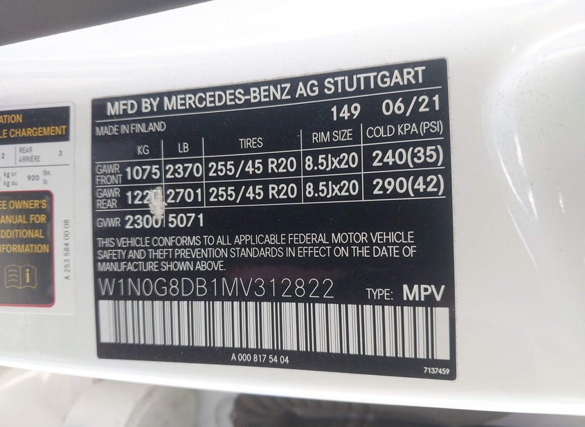- VIN: W1N0G8DB1MV312822