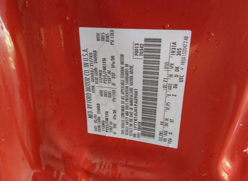 - VIN: 1FTYR14U01PA89881