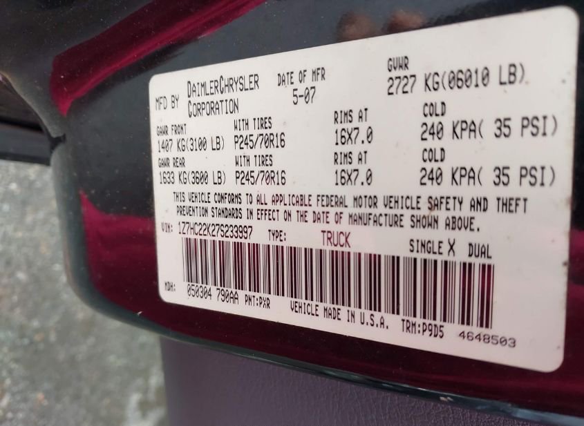- VIN: 1Z7HC22K27S233997