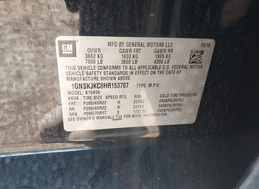 - VIN: 1GNSKJKC8HR153787