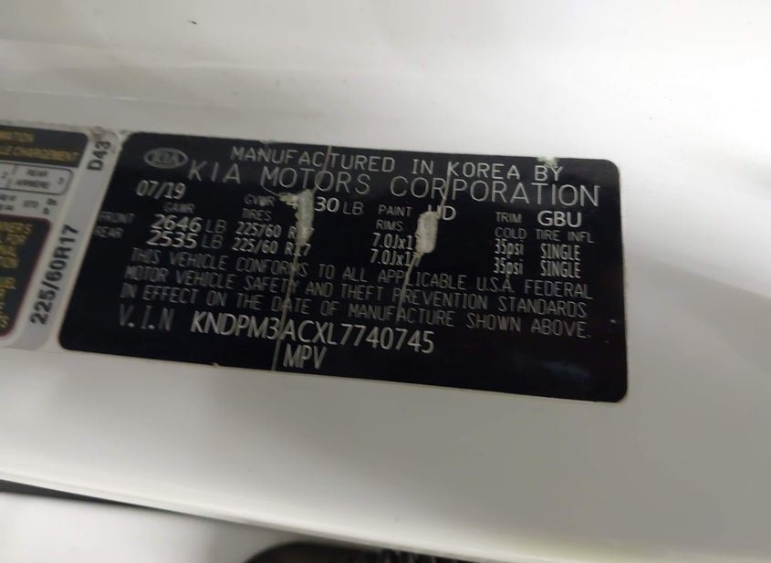 - VIN: KNDPM3ACXL7740745