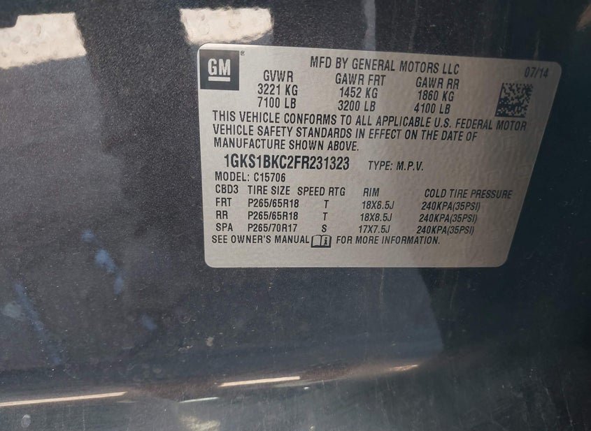 - VIN: 1GKS1BKC2FR231323