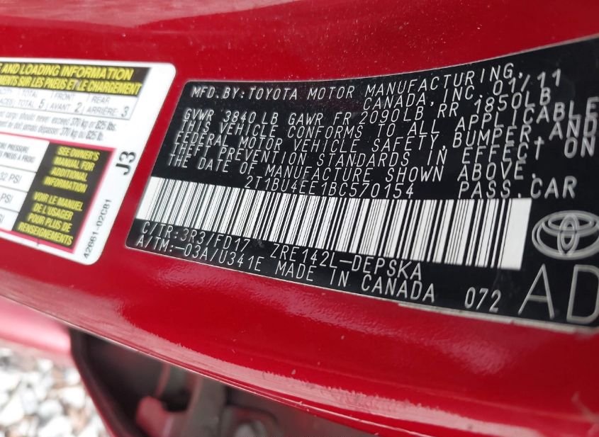 - VIN: 2T1BU4EE1BC570154