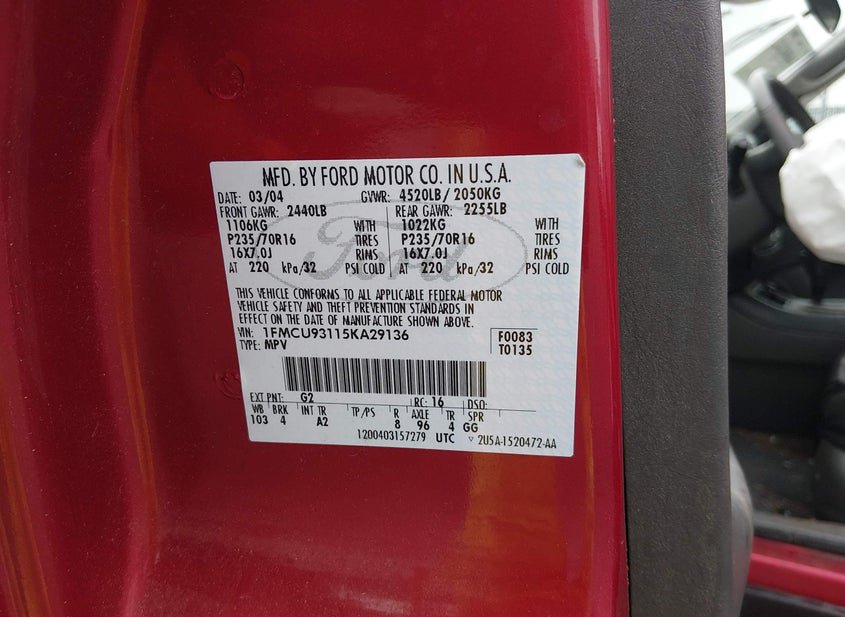 - VIN: 1FMCU93115KA29136