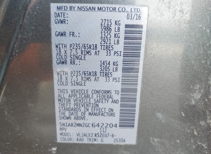 - VIN: 5N1AR2MN2GC642204
