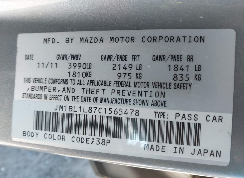 - VIN: JM1BL1L87C1565478