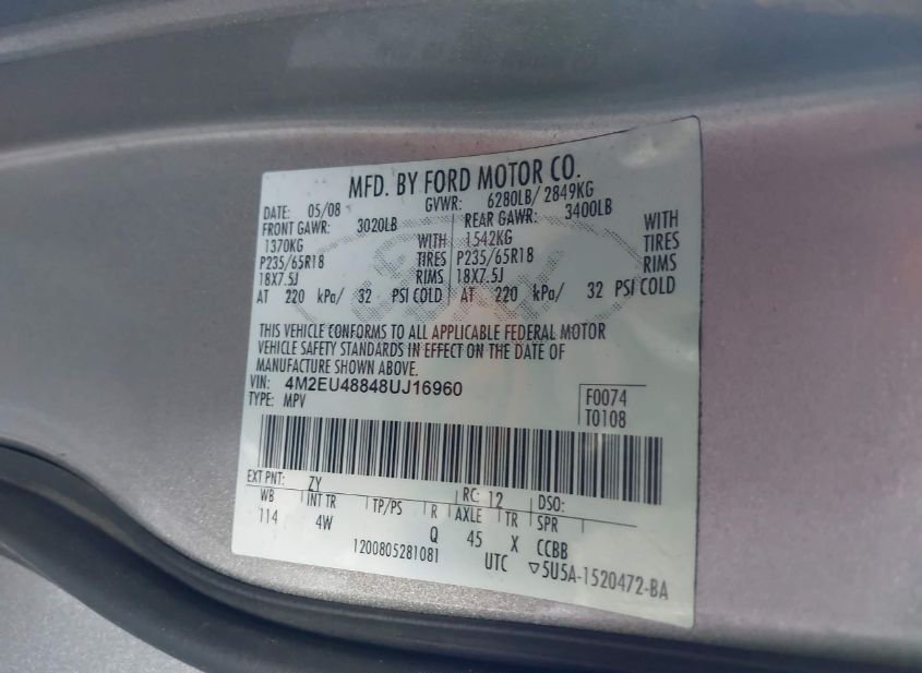 - VIN: 4M2EU48848UJ16960