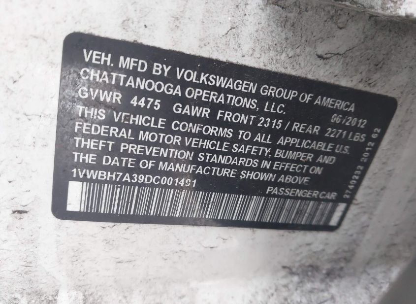 - VIN: 1VWBH7A39DC001491