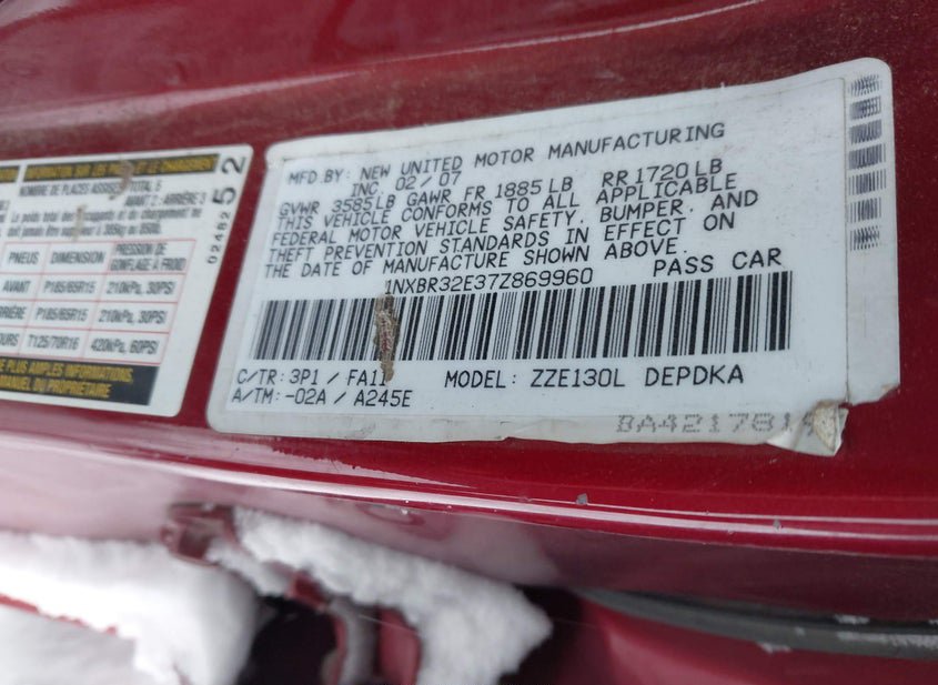 - VIN: 1NXBR32E37Z869960