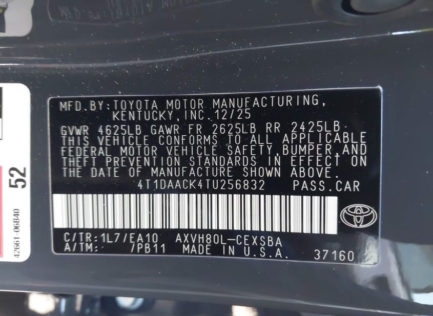 - VIN: 4T1DAACK4TU256832