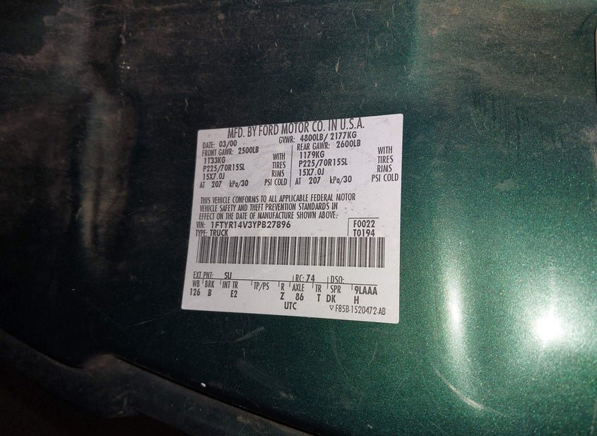- VIN: 1FTYR14V3YPB27896