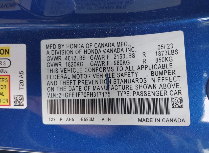 - VIN: 2HGFE1F70PH317175