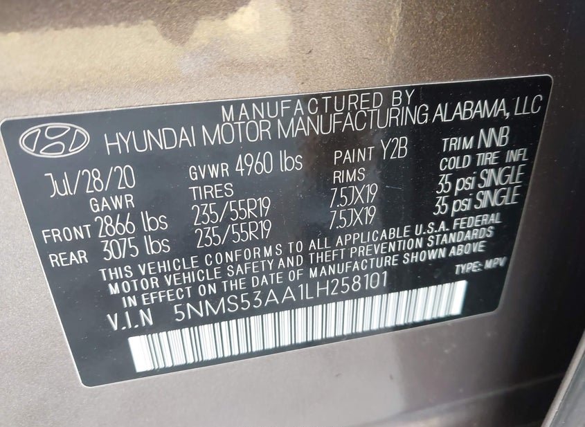 - VIN: 5NMS53AA1LH258101