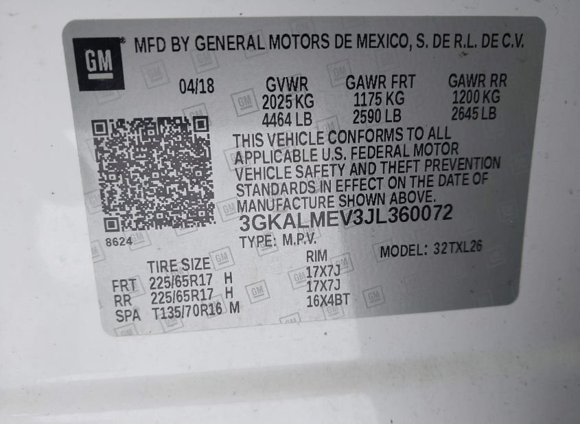 - VIN: 3GKALMEV3JL360072