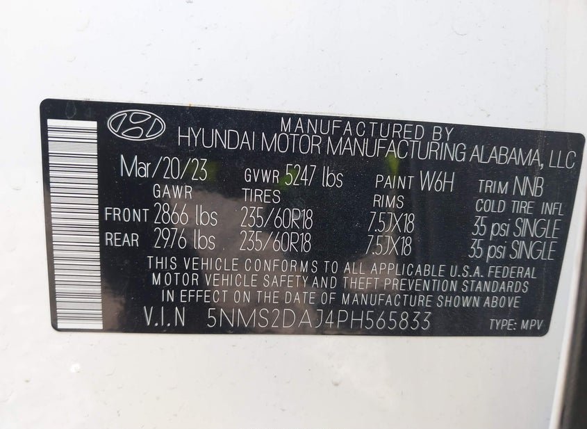 - VIN: 5NMS2DAJ4PH565833