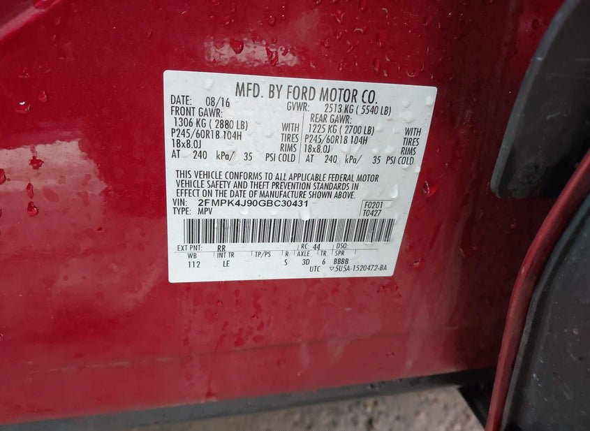 - VIN: 2FMPK4J90GBC30431