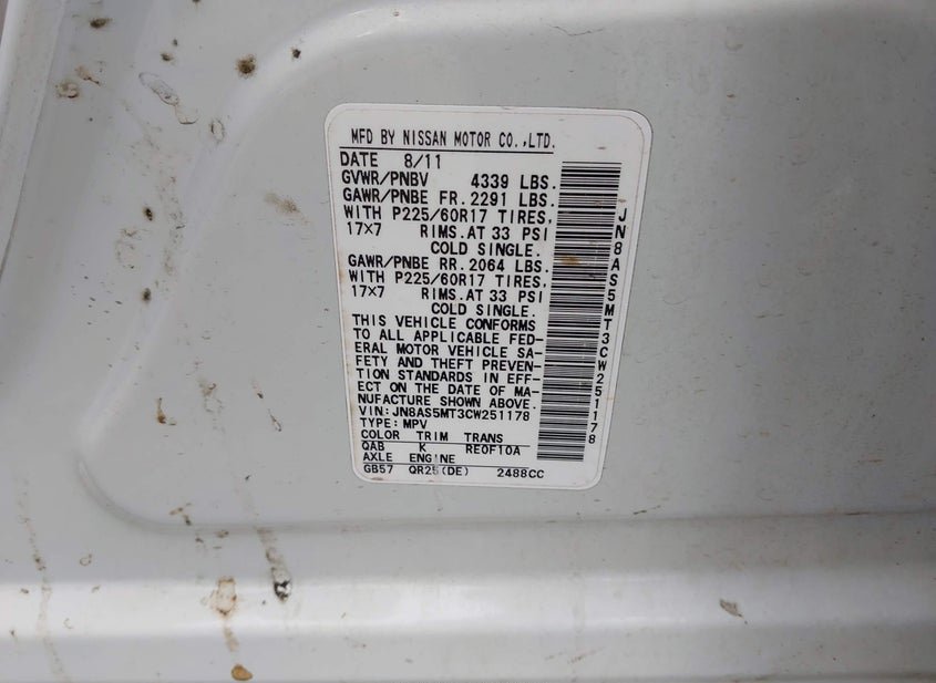 - VIN: JN8AS5MT3CW251178
