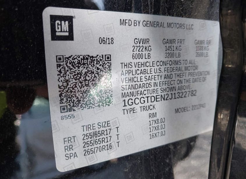 - VIN: 1GCGTDEN2J1322782