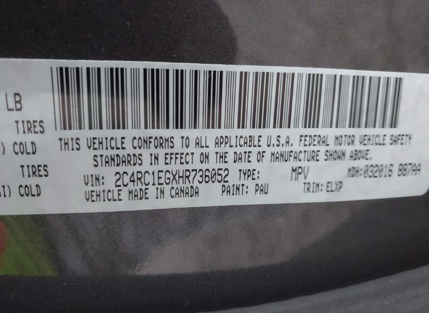 - VIN: 2C4RC1EGXHR736052