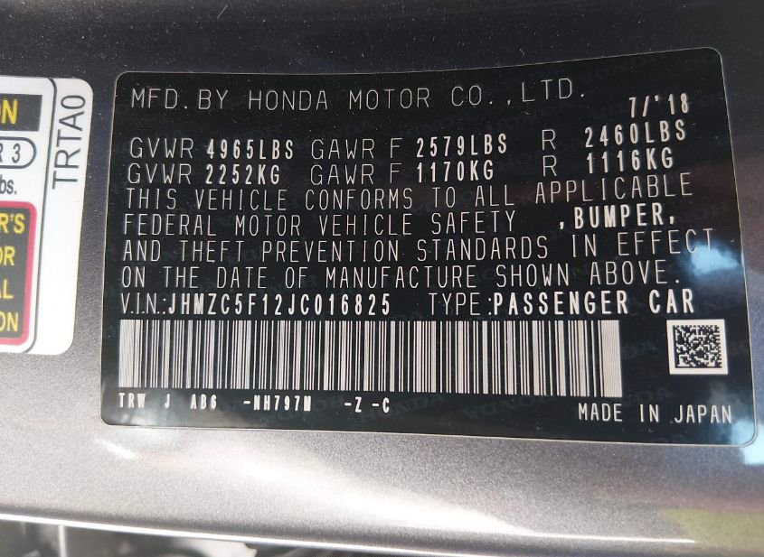 - VIN: JHMZC5F12JC016825