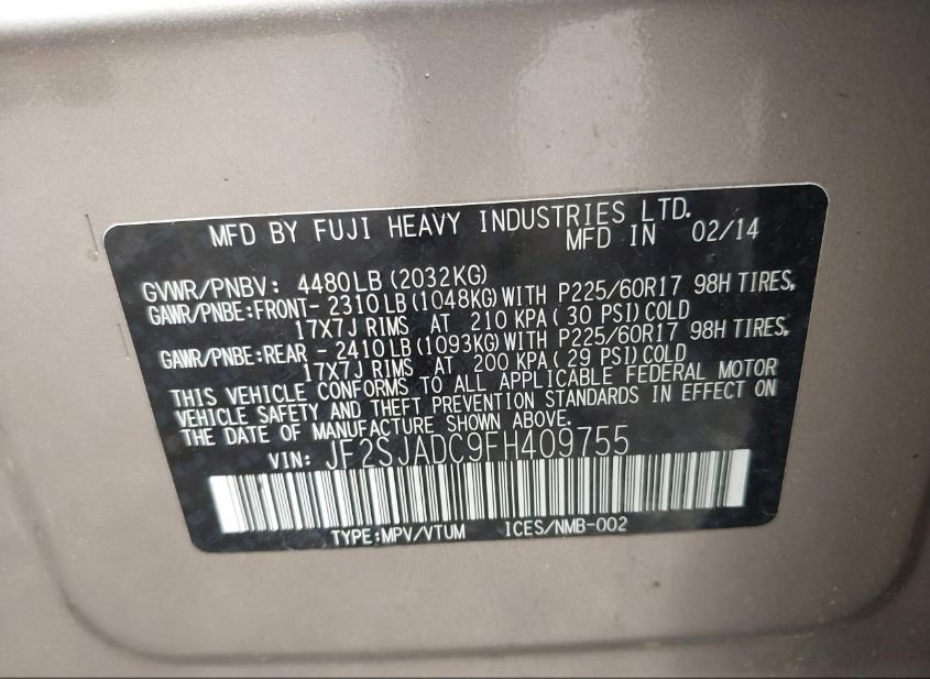 - VIN: JF2SJADC9FH409755