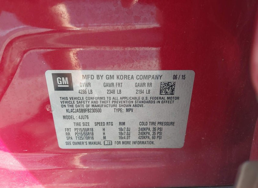 - VIN: KL4CJASB9FB230500