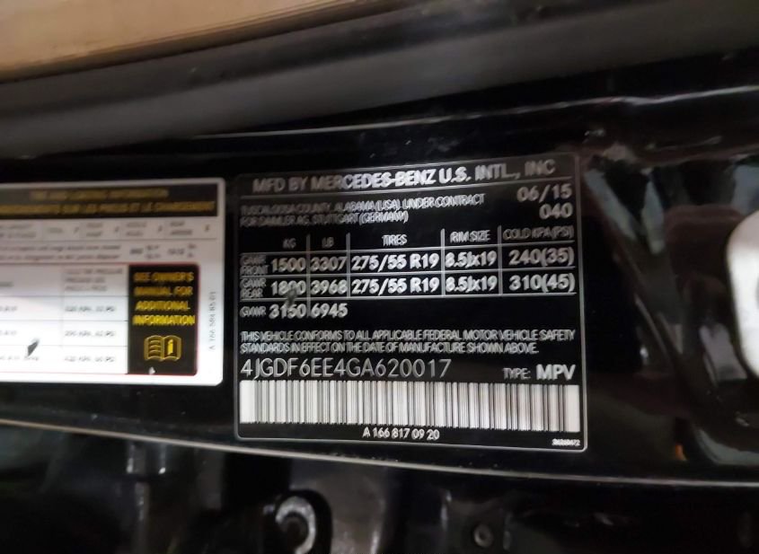 - VIN: 4JGDF6EE4GA620017