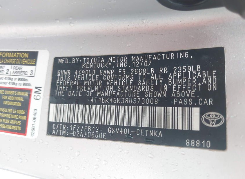 - VIN: 4T1BK46K38U573008