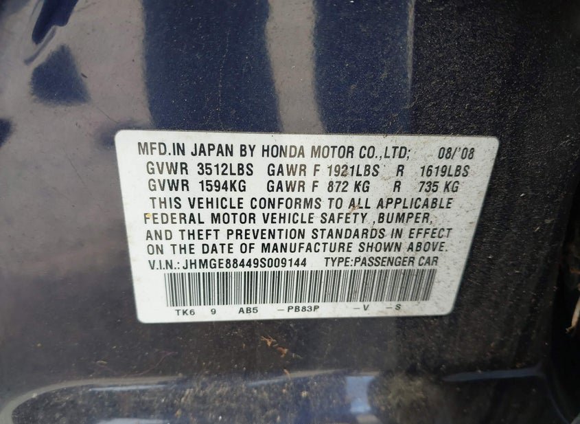 - VIN: JHMGE88449S009144