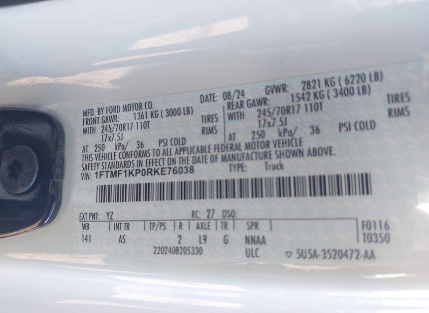 - VIN: 1FTMF1KP0RKE76038